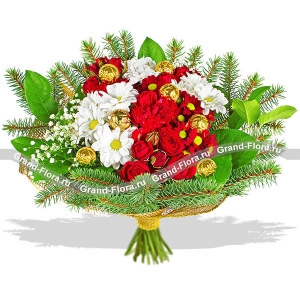Новогодняя история - букет из хризантем и гвоздик